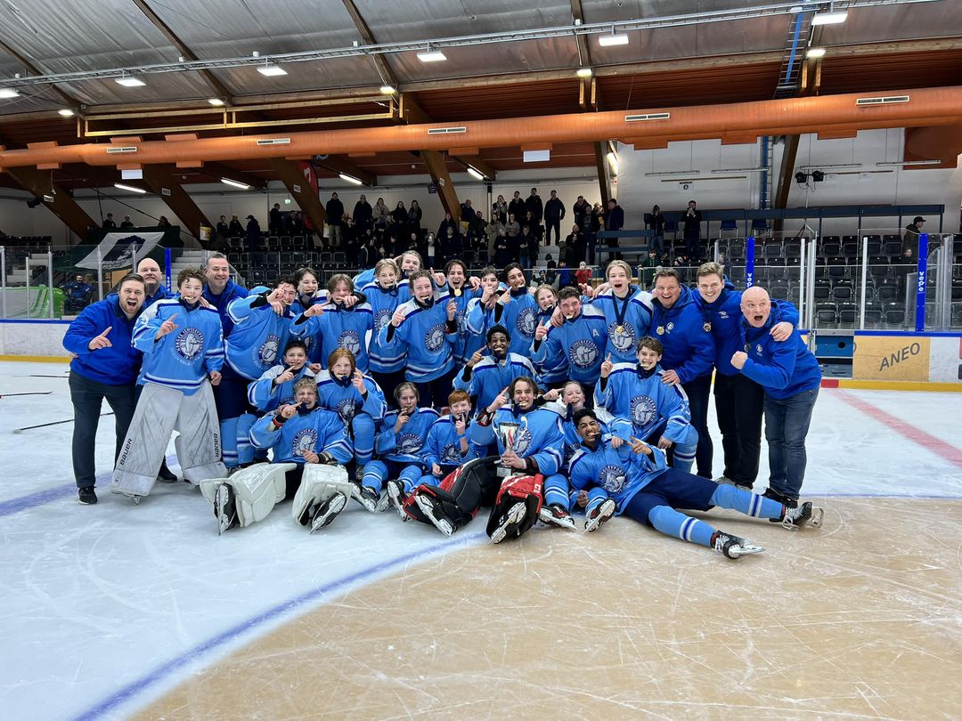 Etter fire seire og en uavgjort i gruppespillet, var de klare for finale mot Region Midt. Etter en litt trå start spilte de en forrykende tredjeperiode og vant til slutt 5-2. Gullmedaljer og pokal ble med bussen sørover.