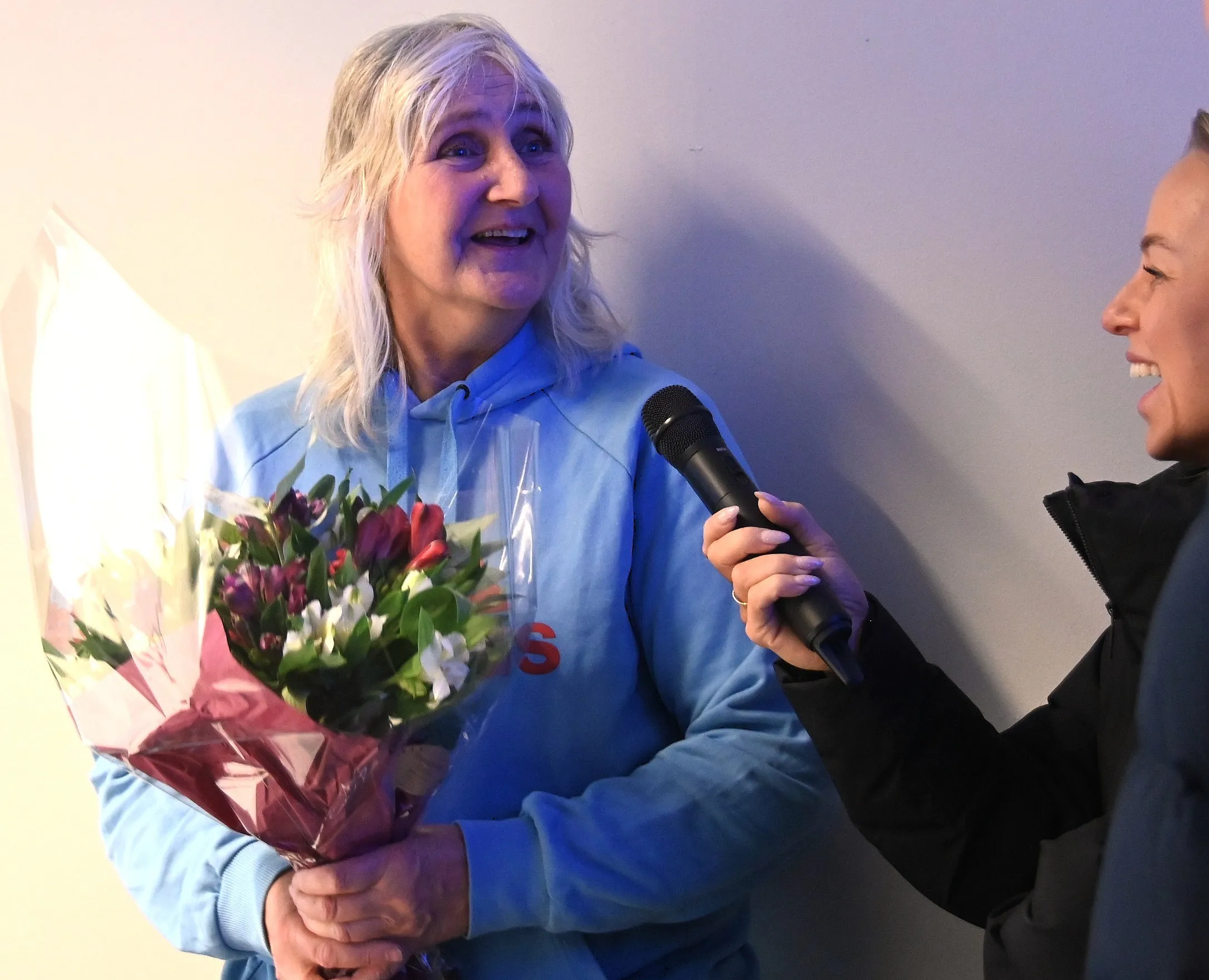 Kari ble tatt fullstendig på senga, men det skulle bare mangle! Det er slike øyeblikk som minner oss på hvorfor vi holder på med dette: fordi mennesker som Kari gjør idretten større enn bare idrett.