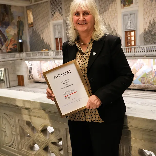 Årets ildsjel Kari Fjellhammer som ble kåret av Oslo idrettskrets ble også hedret med 20.000kr og diplom. Pengene gir hun til ju14/ju16 laget.