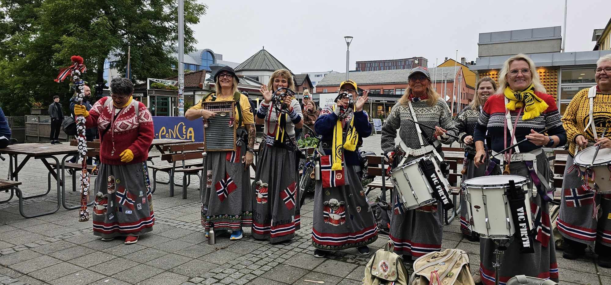 Etter en god og lang hotellfrokost på fredagen busset vi ut til Norges Luftfartsmuseum og tittet på gamle fly. Tok en bedre lunsj i kaféen der før turen gikk tilbake til sentrum. Sportstøyet måtte på før paraden staret og førte oss og 1700 andre deltakere og trenere/lagledere/støttespillere gjennom en hinderløype av underholdningsbidrag gjennom Bodøs gater. Åpningshowet var helt knall - Vidar Riseth var konferansier, Min Trio spilte, det ble taler fra sentrale personer og ikke minst lapskaus til middag. Tilbake på hotellet hadde endelig Solveig, Lars Petter, Kent og Tobias kommet, slik at troppen var komplett.
